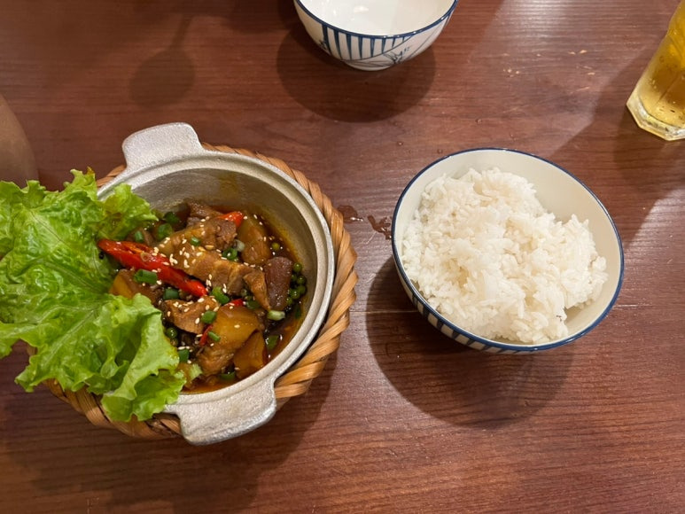 소고기미꽝, 돼지고기조림, 파인애플 볶음밥